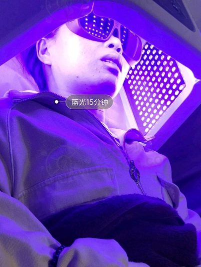 接下来就是照光环节了。先照15分钟蓝光,蓝光有点刺眼,不过医生给我戴了眼罩。照蓝光的时候,我能感觉到皮肤在一点点被消炎,那种感觉特别奇妙。然后又照了15分钟红光,红光暖暖的,就像晒太阳一样,让我感觉特别安心。